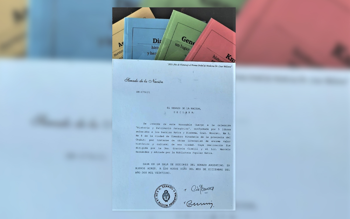 La colección "Historia y Patrimonio Patagónico" ha sido declarada de Interés por el Senado de la Nación. Más información de los libros: Click aquí